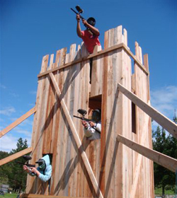 The Speedball Course is a tournament field. It features two 4.3m high multi-storey forts and a variety of barricades. This course is perfect for smaller groups who want a fast, hard game. Players need to be fit and fearless.